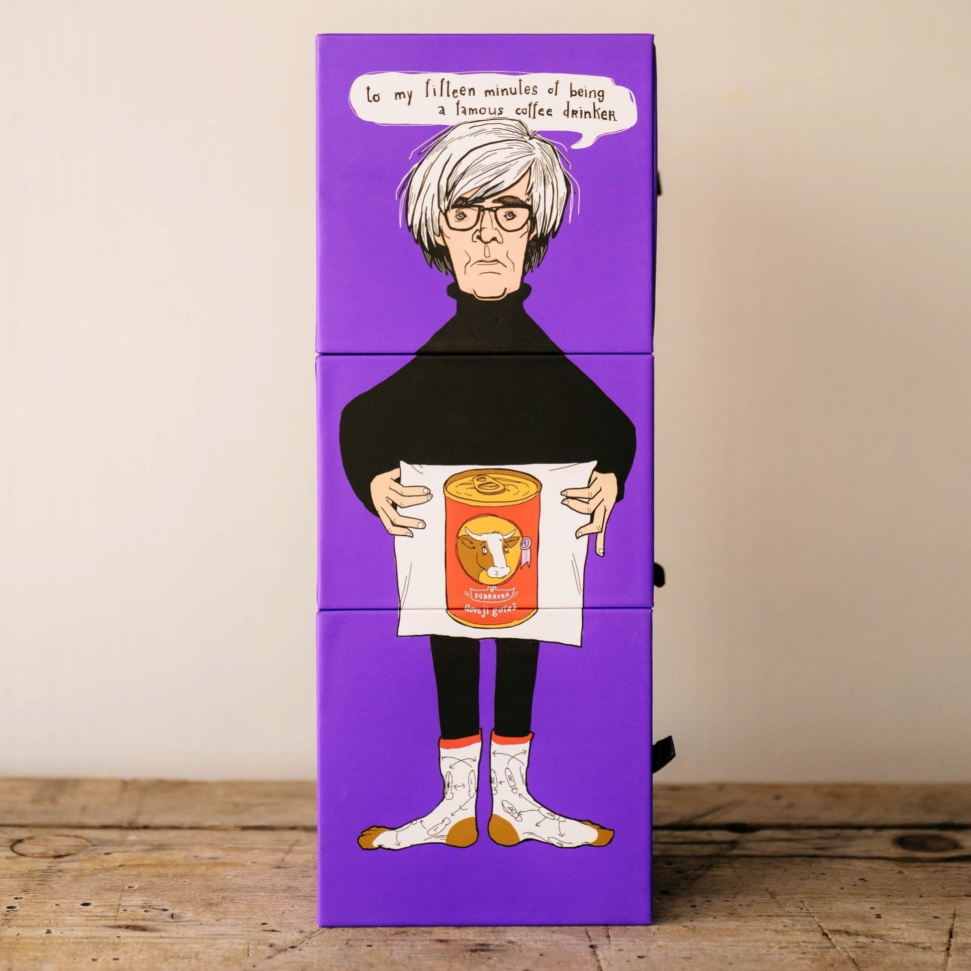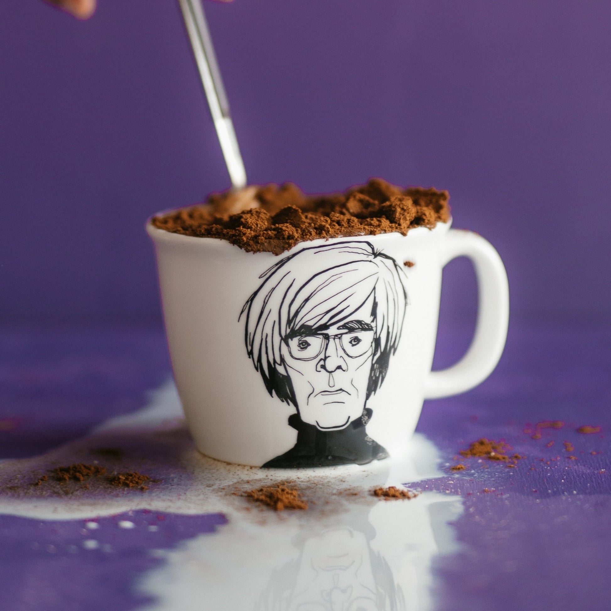 Der Held dieser Tasse nahm sich Andys Bemerkung über 15 Minuten Ruhm zu Herzen und meldete sich bei einer Reality-Show namens „The Factory“ an, in der die Teilnehmer*innen in höchst oberflächlichen Gesprächen, Watusi-Tanz und Suppendosen-Zeichnen gegeneinander antreten. Der Popstar ist ein Wegbebleiter von aufstrebenden Prominenten und Avantgarde-Denkern.