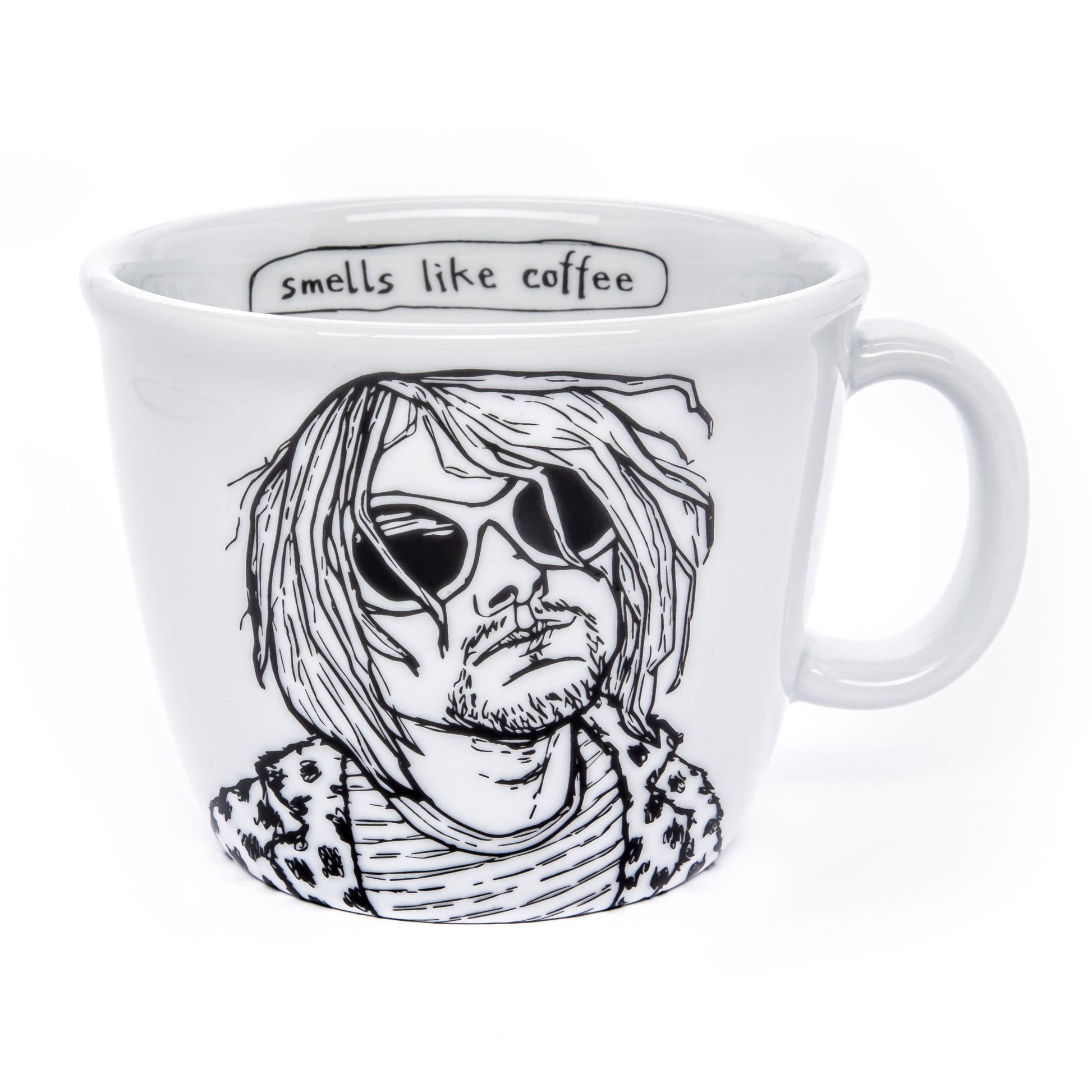 Der Held dieser Tasse hat sich an seinem Idol Kurt orientiert und trägt flauschige Strickjacken, weiße Sonnenbrillen, verrückte Animalprints und schmuddelige Jeans. Und er schwärmt ständig von Deodorants und wankelmütigen Mädchen. Der gutaussehende Grunger ist ein temperamentvoller Begleiter für coole Partygänger und leidenschaftliche Nirvana-Fans.